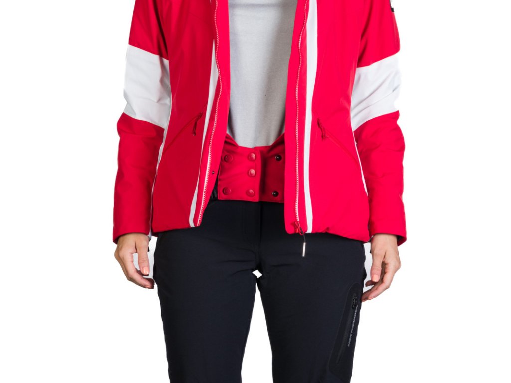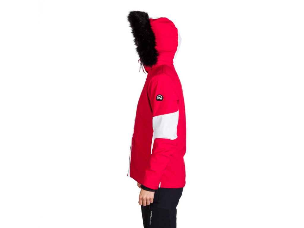 Táto izolovaná softshellová lyžiarska bunda je ideálnou voľbou pre všetky lyžiarky, ktoré hľadajú kombináciu pohodlia, funkčnosti a štýlu. Bunda je vyrobená z 2-vrstvového softshellu, ktorý je nielen 4-smerne pružný, ale ponúka aj odolnosť proti vode a vetru s hodnotami 5 000 mm H₂O / 5 000 g/m²/24 h. Materiál bol tiež ošetrený ekologickou vodoodpudivou úpravou WR (bez PFC). Výber materiálu v oblasti lakťov, po bokoch a na vnútornej strane ramien je jedinečný. Tieto časti sú vyrobené z vysoko pružného materiálu (10K/10K), ktorý zvyšuje flexibilitu bundy a zaisťuje maximálny komfort pri pohybe. Pohodlie zvyšujú predtvarované rukávy s vložkami z lycry, nastaviteľný pás a možnosť nastavenia spodného lemu. Bunda je vybavená dvoma praktickými bočnými vreckami na zips, vreckom na rukáve na skipas a vnútorným vreckom na zips na hrudi. Ďalšia vnútorná vrecká je určená na uloženie lyžiarskych okuliarov. Funkčnosť bundy dokonale dopĺňa odnímateľná 3D kapucňa s odnímateľným kožušinovým lemovaním. Bunda je pripravená na zimné počasie, sneh a vietor vďaka vetruodolnému pásiku pod zipsom a snehovej sukni, ktorá chráni pred vniknutím snehu dovnútra bundy. Ďalšou praktickou funkciou je otvor/držák na slúchadlá, vďaka ktorému si môžete vychutnať svoju obľúbenú hudbu. Materiál: 100 % polyester