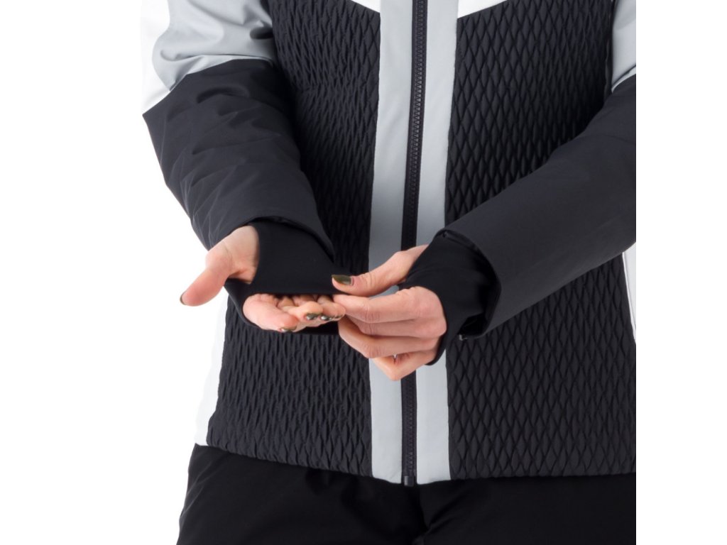 Táto trendy, polopriliehavá lyžiarska bunda je určená na zjazdové lyžovanie. Vďaka atraktívnemu prešívanému dizajnu a výrazným farebným kombináciám budete na svahu určite vynikať. Bunda je vyrobená z membránového materiálu, ktorý spoľahlivo chráni pred vlhkosťou a premoknutím, zároveň je priedušný, čo umožňuje aktívny pohyb bez zbytočného potenia. Lepené kritické švy tiež poskytujú ochranu proti prenikaniu vlhkosti. Bunda je izolovaná mäkkým syntetickým flisom, ktorý je pružný a elastický a dobre sa prispôsobuje pohybu. Vďaka vodoodpudivej úprave materiálu bez použitia PFC zlúčenín sa kvapky dažďa alebo tekutá špina nevsakujú do povrchu materiálu, ale stekajú z neho. Úprava je odolná voči praniu, takže výrobok môžete prať tak často, ako potrebujete.