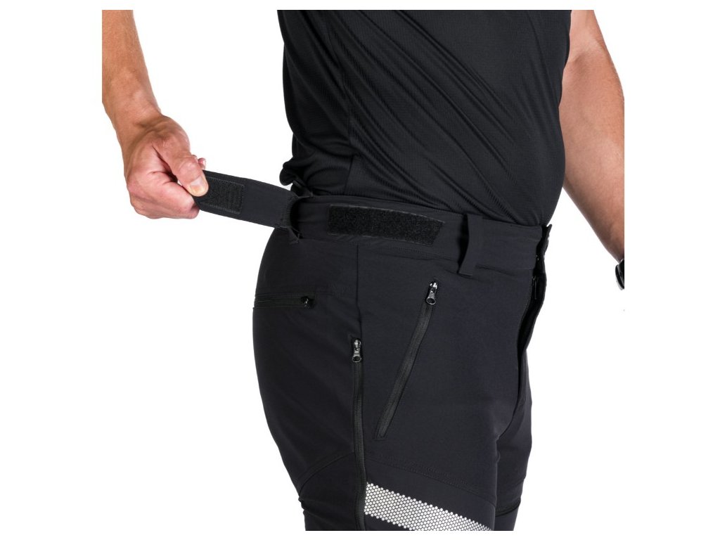 Tieto hybridné softshellové nohavice s celoprepínacím zipsom sú ideálne na turistiku, horskú cyklistiku a voľnočasové aktivity počas jesene, zimy a skorého jari. Sú perfektné na aktívny pohyb aj za veterného alebo mierne vlhkého počasia. Vďaka obojsmernému zipsom na bokoch si tieto nohavice môžete ľahko obliecť ako ochranné nohavice bez toho, aby ste museli vyzúvať topánky. Tieto bočné zipsy môžete v prípade potreby použiť aj na bočné vetranie. Predná časť a sedacie partie nohavíc sú vyrobené z trojvrstvového softshellu s parametrami 10 000 mm H₂O / 10 000 g/m²/24 h, ktorý je elastický a má vodu odpudzujúcu, ekologickú WR úpravu bez PFC látok. Chrbát je vyrobený z priedušnej strečovej tkaniny, tiež s povrchovou úpravou DWR bez PFC. Táto hybridná konštrukcia zaisťuje perfektnú pohyblivosť a neobmedzuje pohyb. Nohavice majú nastaviteľný pás po flexi pre dobré prispôsobenie. Majú dve bočné vrecká na zips a jedno vrecko na zips na chrbte. Obvod v spodnej časti nohavíc je možné prispôsobiť vašim potrebám. A aby ste boli lepšie viditeľní, nohavice sú vybavené reflexným potlačou. Materiály: Predná časť, sed: 3-vrstvový softshell, 88 % polyamid, 12 % spandex Zadná časť: 86 % polyamid, 14 % spandex