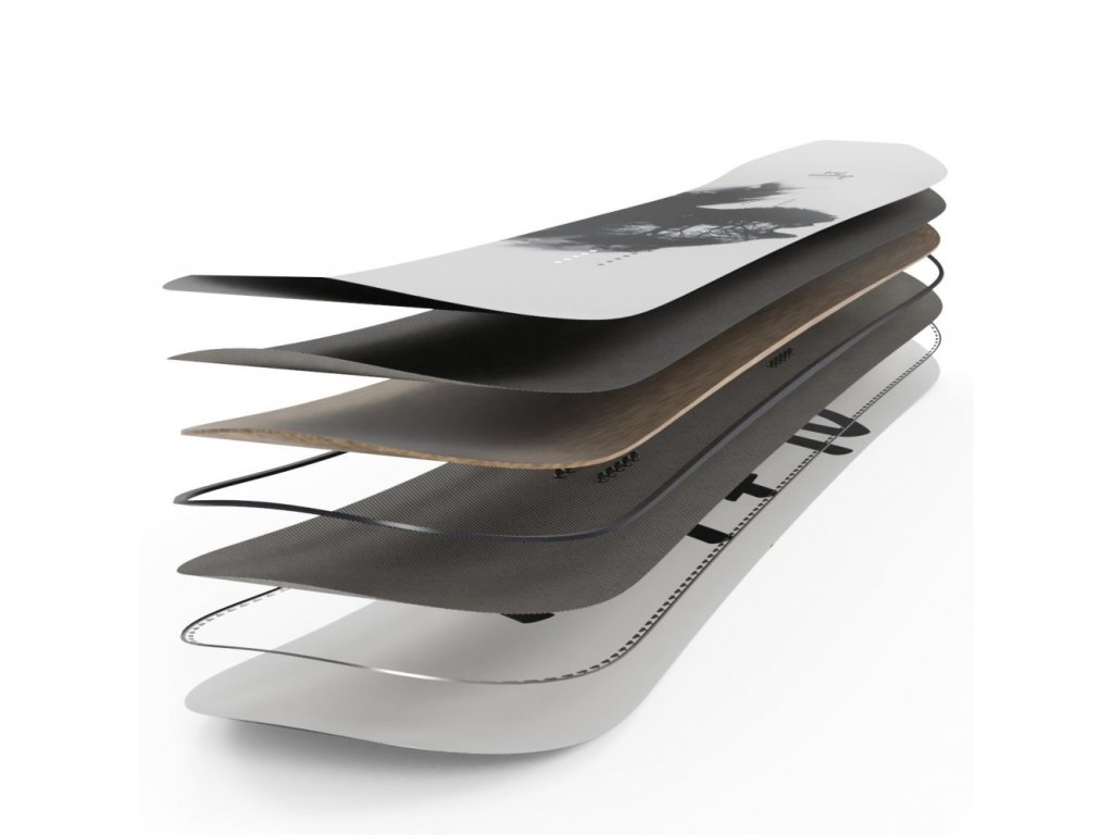 - Biax laminát – najčastejšie používaná metóda laminovania dodáva snowboardu vysokú kvalitu a ľahký torzný flex. Vďaka tomu sa doska ľahko otáča a zaručuje veľa zábavy na svahu aj v snowparku.