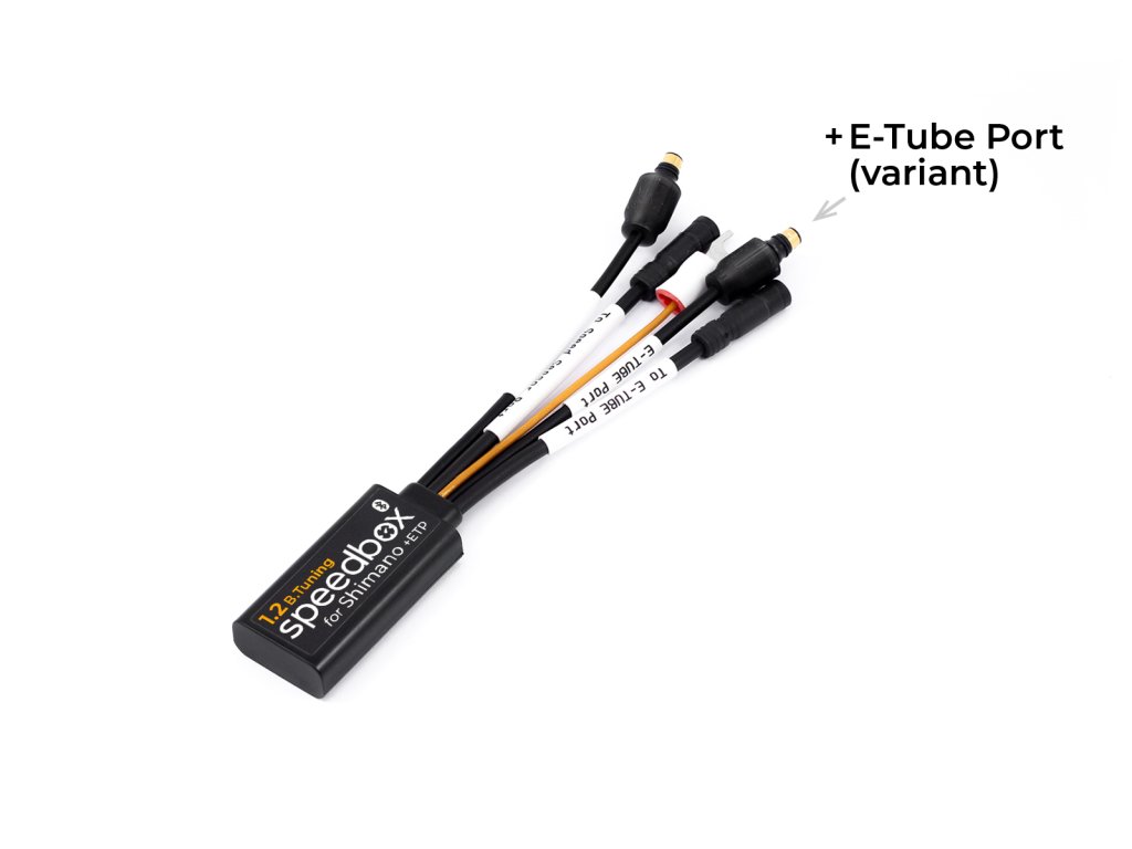Na rozdiel od predchádzajúcich verzií sa tento nový produkt pripája aj do E-Tube portu motora. Je preto potrebné, aby elektrický bicykel, do ktorého chcete nainštalovať novú verziu SpeedBox for Shimano, mal k dispozícii jeden voľný E-Tube port. V prípade, že nemáte voľný E-Tube port, vyberte prosím variantu „+E-Tube Port”.