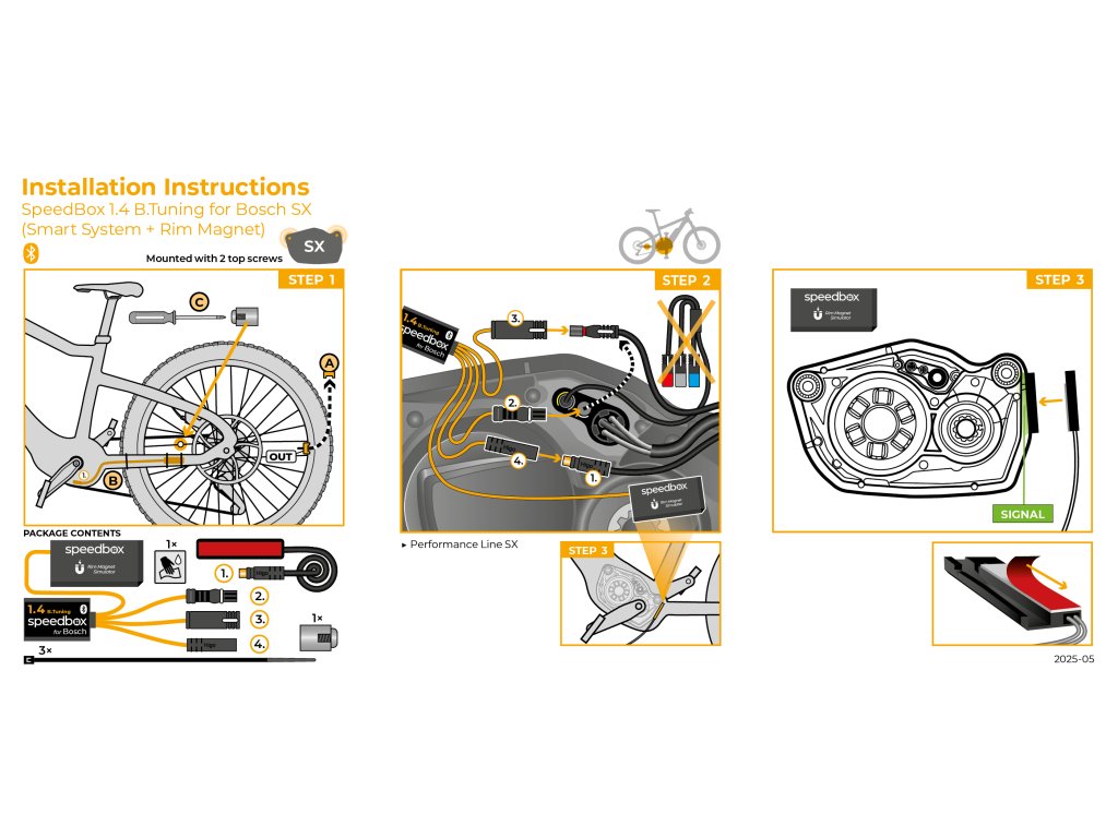 Tuningový čip s technológiou Bluetooth a mobilnou aplikáciou pre váš elektrický bicykel s motormi Bosch 4. generácie so systémom Smart a „Rim magnetom“ na ventilku kolesa. Užite si jazdu bez obmedzení a zároveň všetky vychytávky, ktoré prináša aplikácia SpeedBox.